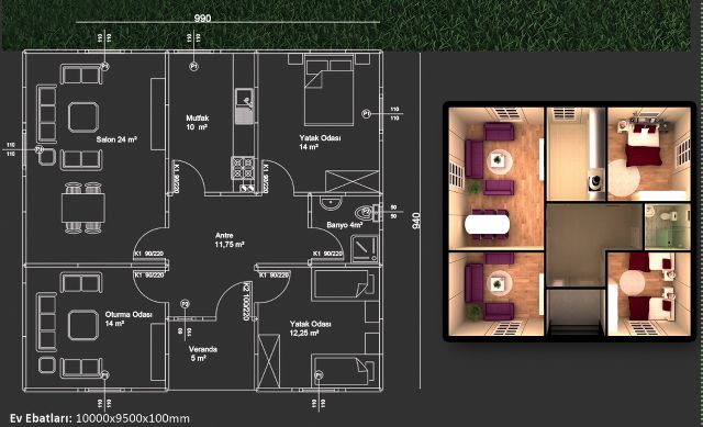 Outer and room walls made of